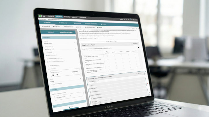 The intuitive survey configuration tool enables you to create your survey quickly and professionally - even without prior knowledge.