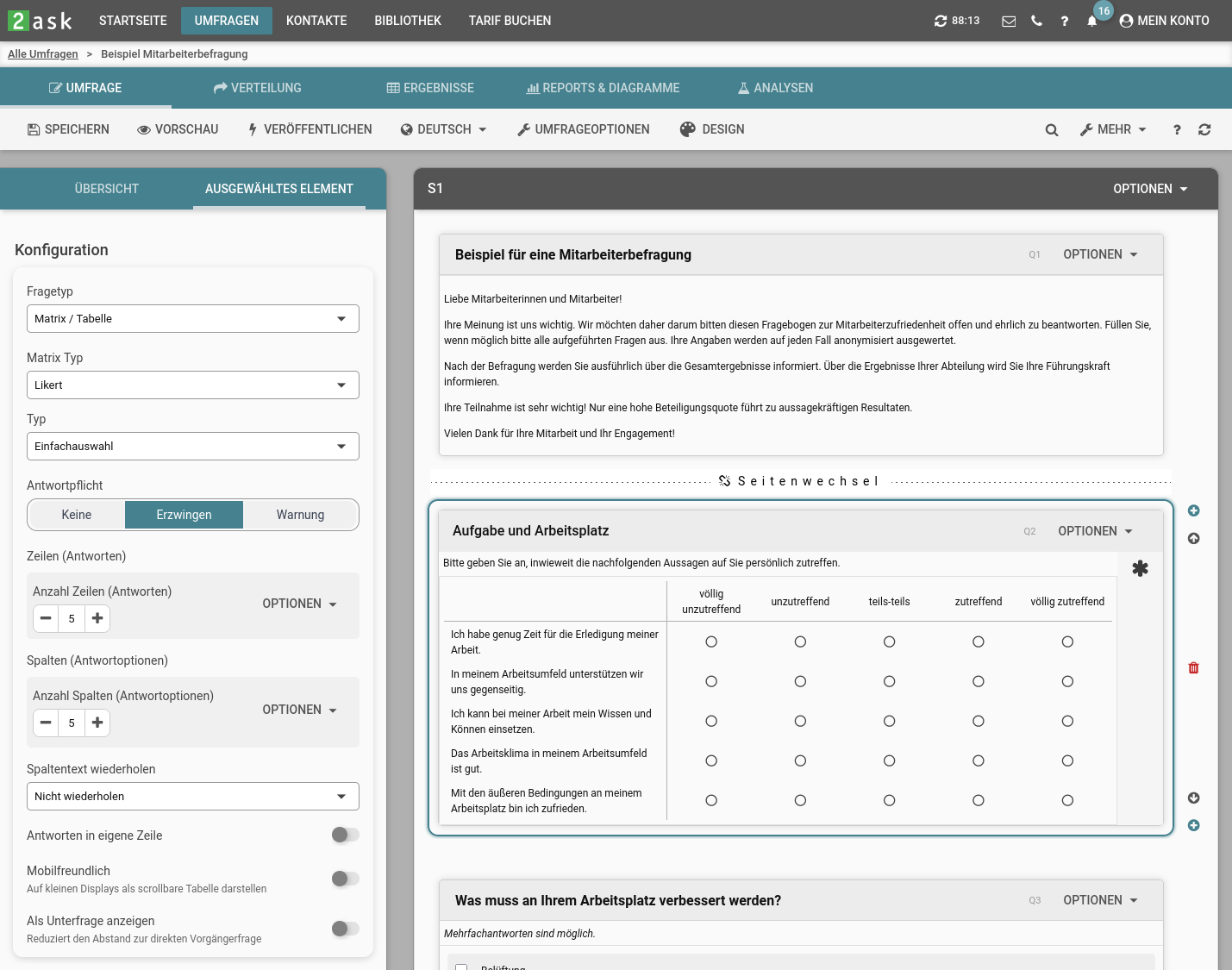 Alle wichtigen Funktionen des Umfrage Tools ausprobieren