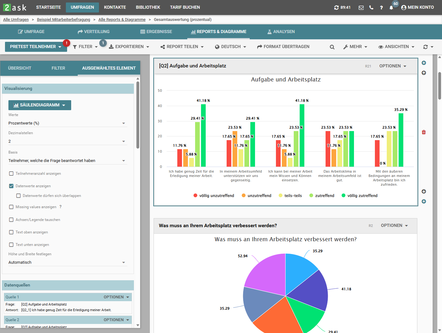 Erstellen Sie mit 2ask aussagekräftige Ergebnispräsentationen - einfach, sicher und flexibel.