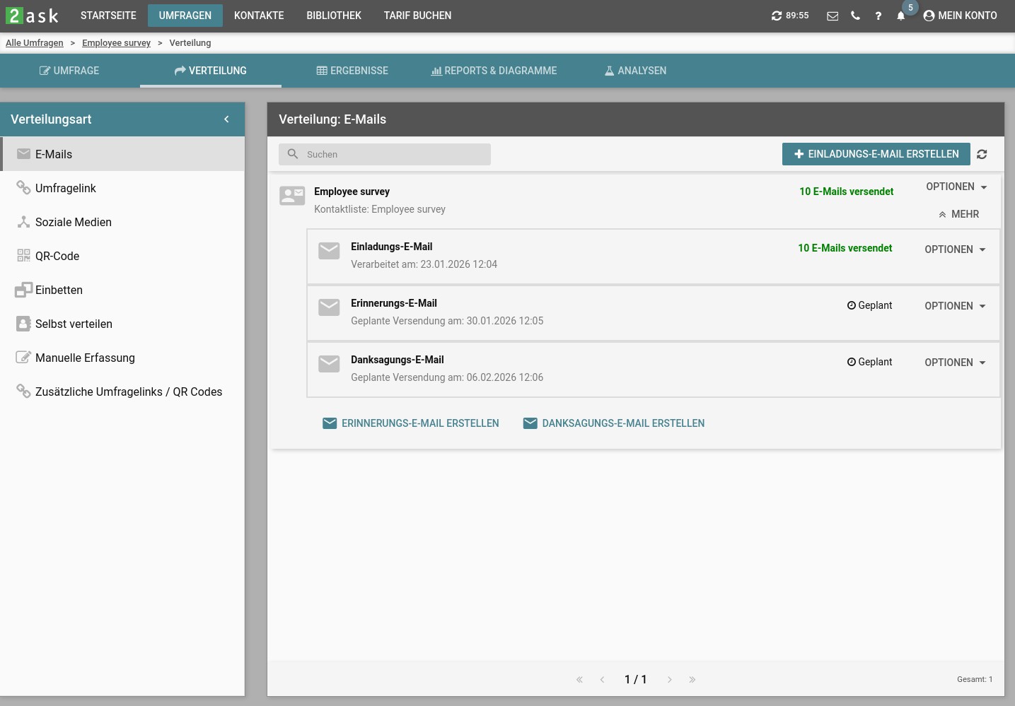 Einfach teilbar über Umfragelink (z. B. Website, Newsletter, Social Media)